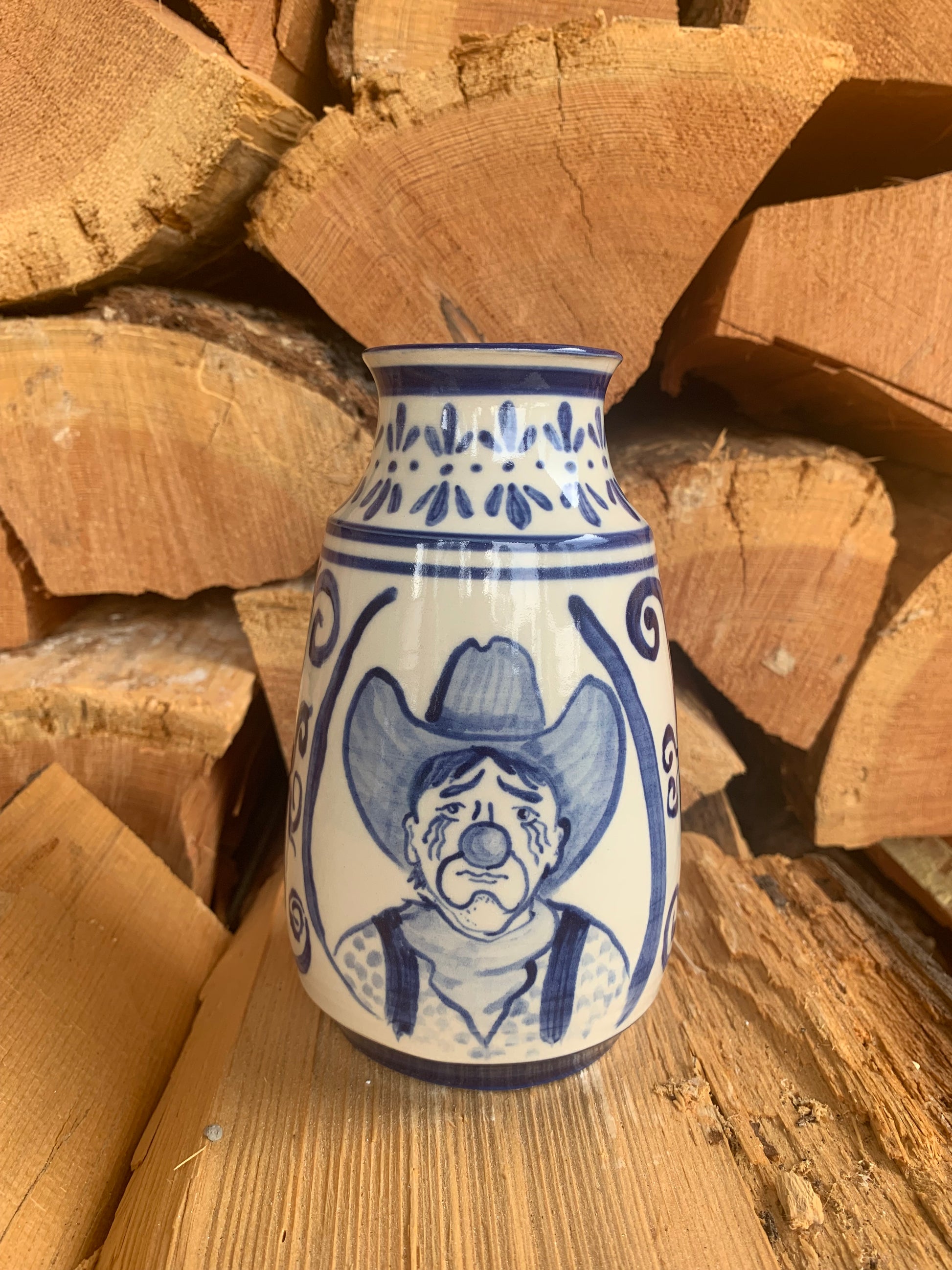 Even rodeo clowns get the blues. 6-7” tall, very emotional.